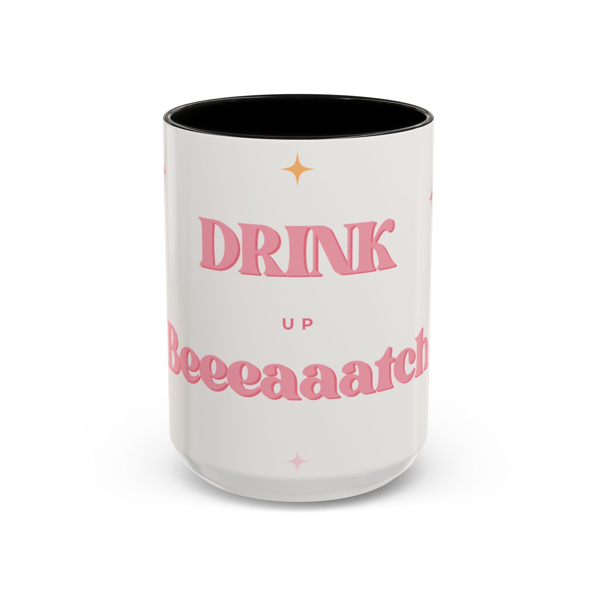 Drink Up Beeaatch 15oz ceramic coffee cup is a fun concept to cheers one another!
